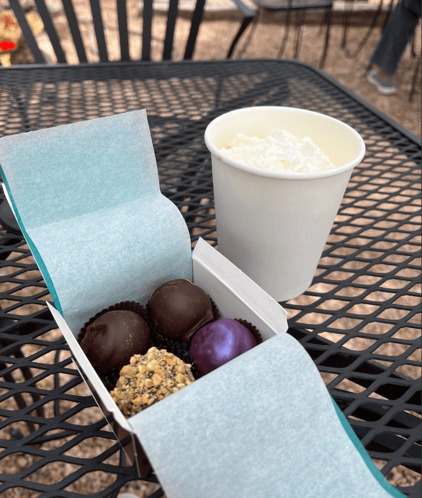 After lunch, I made my way over to Kakawa Chocolate House, which was one of my favorite stops of the whole trip. Kakawa serves up drinking chocolate and all kinds of chocolate creations ranging from truffles to caramels and even brownie sundaes. I got their Mayan drinking chocolate with whipped cream which was the perfect combination of sweet, bitter, spicy, and creamy. I also tried a sampling of their truffles and caramels which were mind-blowingly good. The prickly pear truffle and pinon caramel were my favorites!