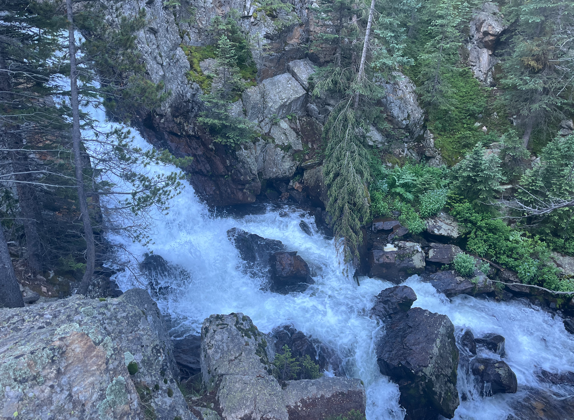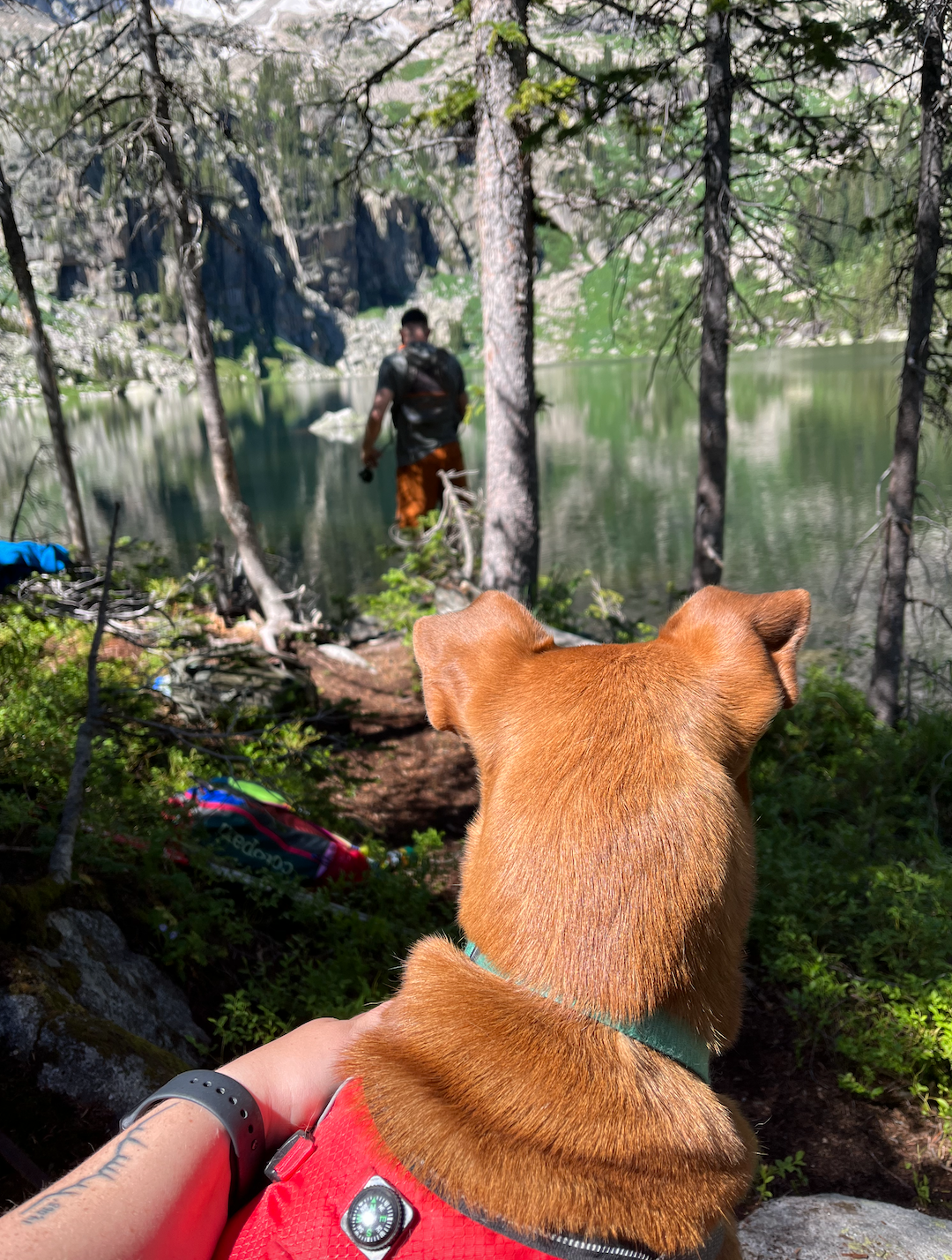 The first 1.5-2 miles are relatively flat and a great warmup for the rest of the trail. You’ll meander through forests as you skirt around Monarch Lake before the trail gradually begins to ascend switchbacks as it follows Cascade Creek. There are a number of river crossings and waterfalls along the trail which made the entire journey super scenic – and our pup loved the constant supply of water!