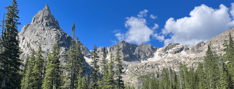The trail begins with a moderately steep ascent through the forest before giving way to open meadows. The trail leads you through what feels like a gentle valley with rock formations and forested hills on either side. We actually saw a family of three moose about 1.5 miles in! This stretch of the trail is mostly flat and a nice break after the initial push.